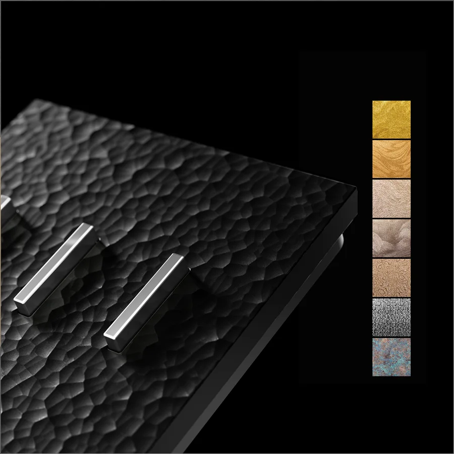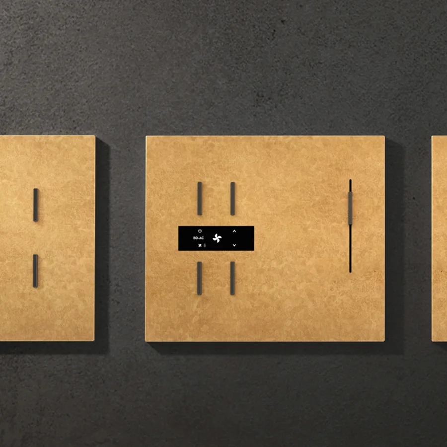 Whether it's the cool gleam of metal, the natural texture of mica, the polished shine of stainless steel, or the warm touch of wood grain, SUBLIME's switch covers can be fully customized to match any space.